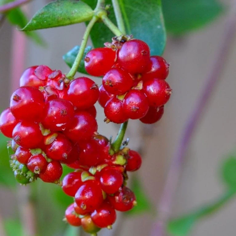 Efter endt blomstring ses undertiden røde bær. Disse er ikke spiselige for pattedyr, men tages gerne af havens fugle.
