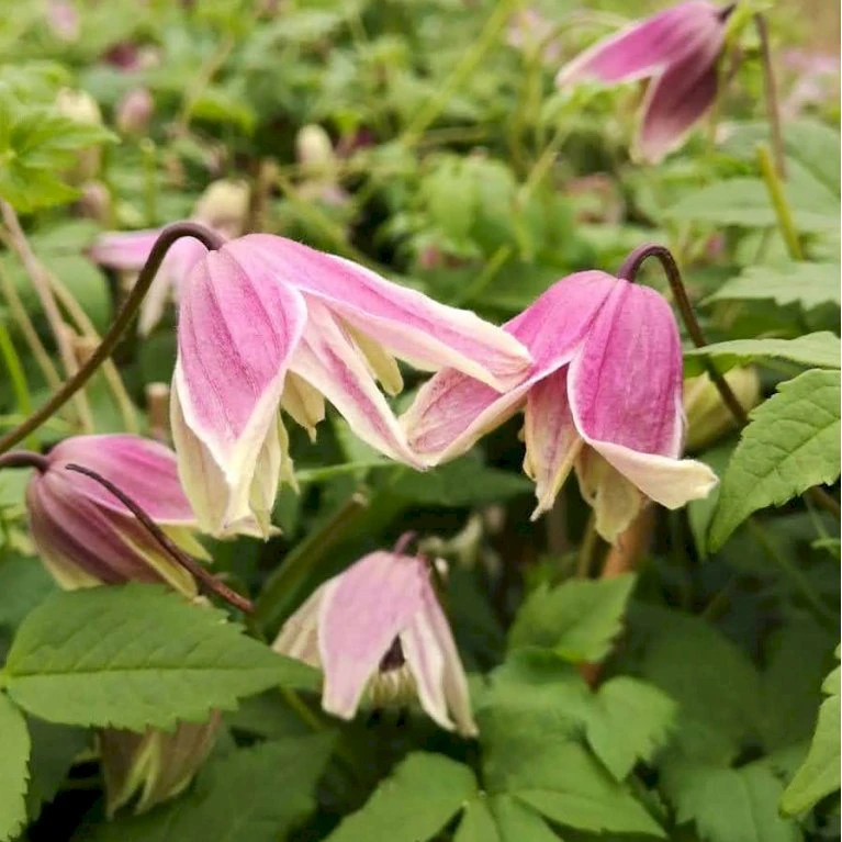 Ultimo april til primo maj. Duftende lavendelfarvede, nikkende blomster med hvidt indre. Blomsterne ligner akelejer. Meget yndig blomst, senere smukke, sølvfarvede frøstande. Blomstrer på gamle grene. Meget rig blomstring, ældre planter kan være helt dækket af blomst.