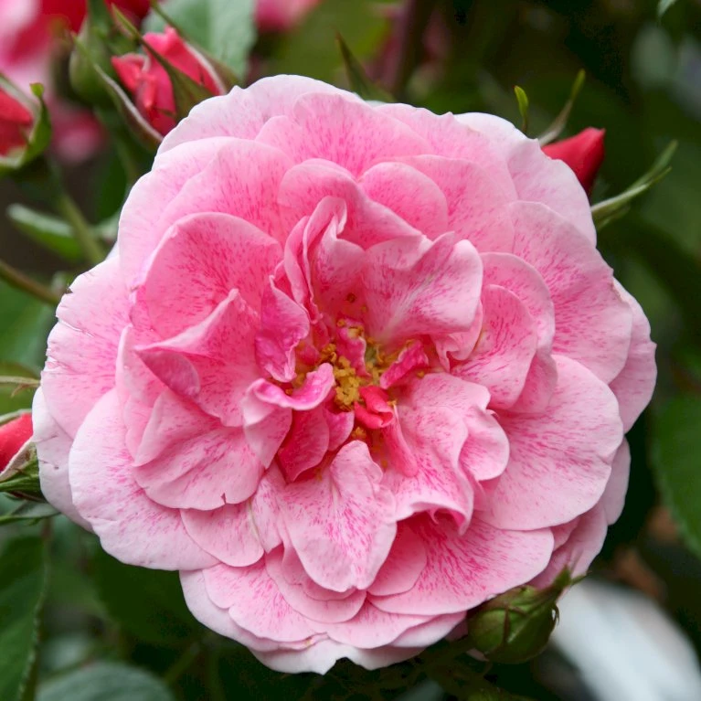 Lysrosa med mørkere årer. Godt fyldte blomster med stærk og behagelig duft. 25-40 kronblade. 10-15 cm i diameter.