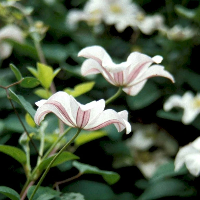 Juli-oktober. Blomsterne er middelstore, hvide med en tydelig stribe mauve på bladenes underside.
