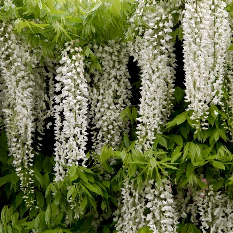 ‘Alba’ er den hvide mutation af den mere kendte og populære kinesiske blåregn ‘Prolific’.