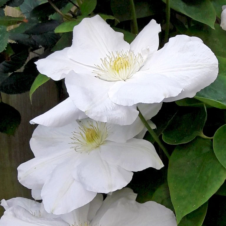 Smukke og meget store hvide blomster med lyse, cremefarvede støvdragere.