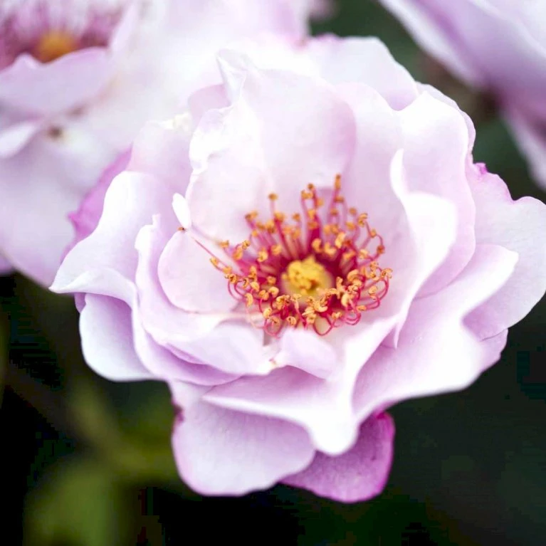 Lys rosalilla med røde støvdragere, meget yndig og anderledes blomst, som i stort antal søges af nytteinekter