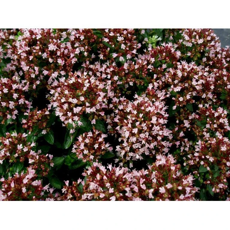 maj-juni. Små rosaviolette blomster i runde stande, mørke bægerblade.