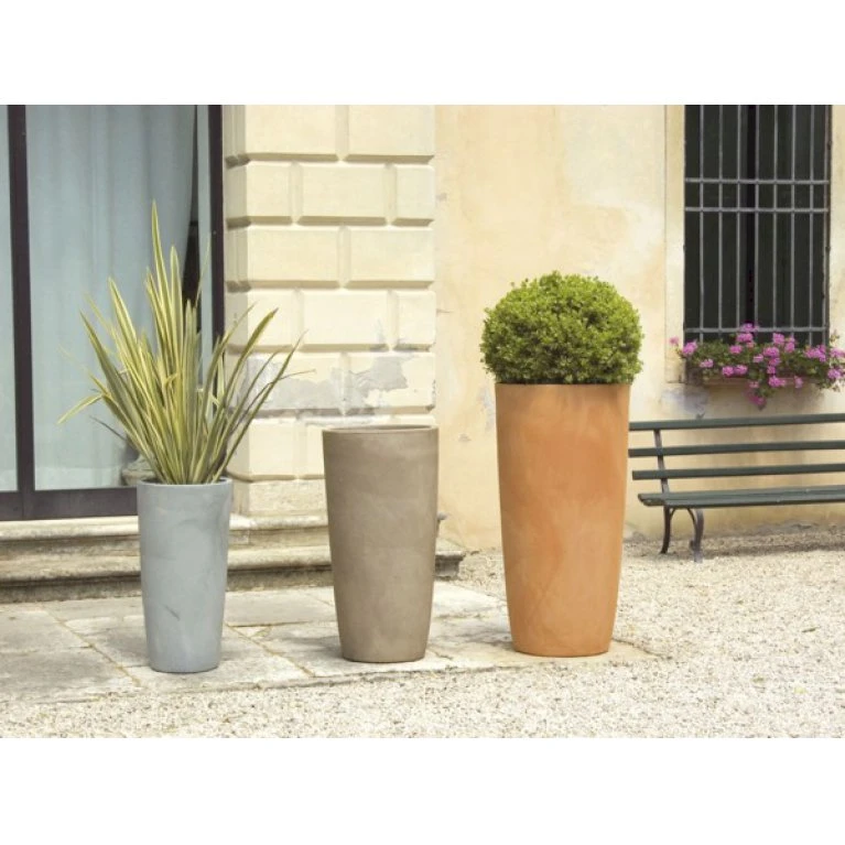 Høj cylinderformet plantekrukke Model Kili, fås i Terracotta, Mocca og Antracit farve.