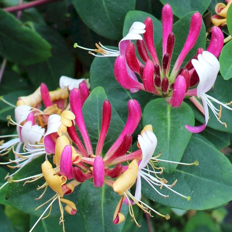 Smukke og meget velduftende rørformede blomster, som sidder mange sammen. Blomsternes farve varierer fra mørkerød og mørkrosa på ydersiden til bleggul og creme på indersiden.