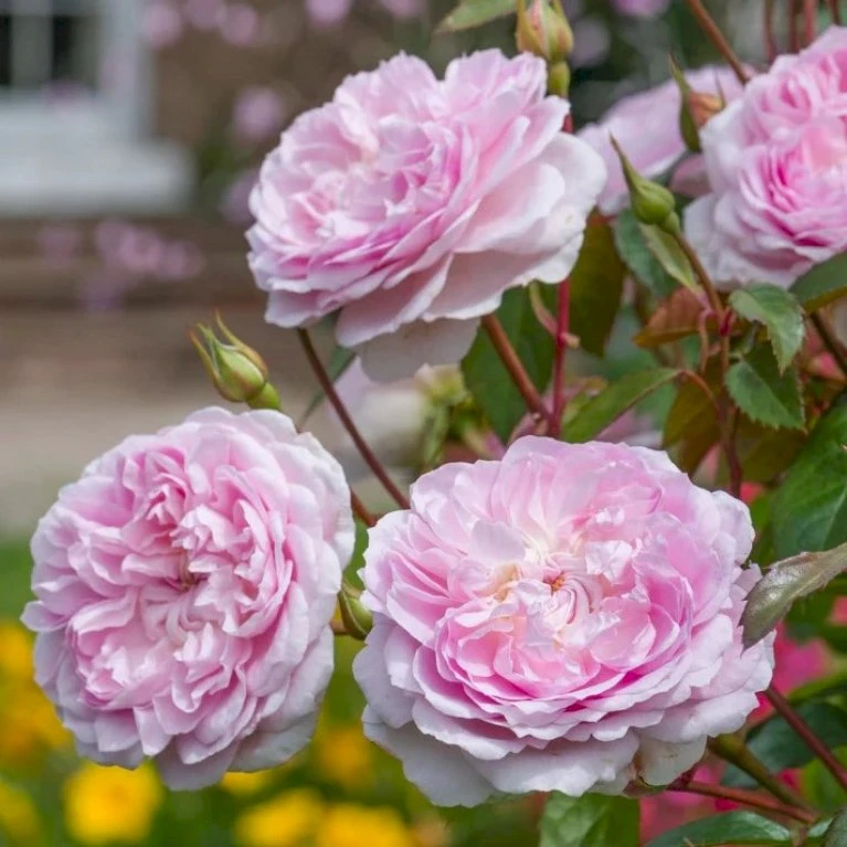Austinroser plantes bedst gruppevis i rosenbede med en planteafstand af 40 cm. Moderat beskæring anbefales.