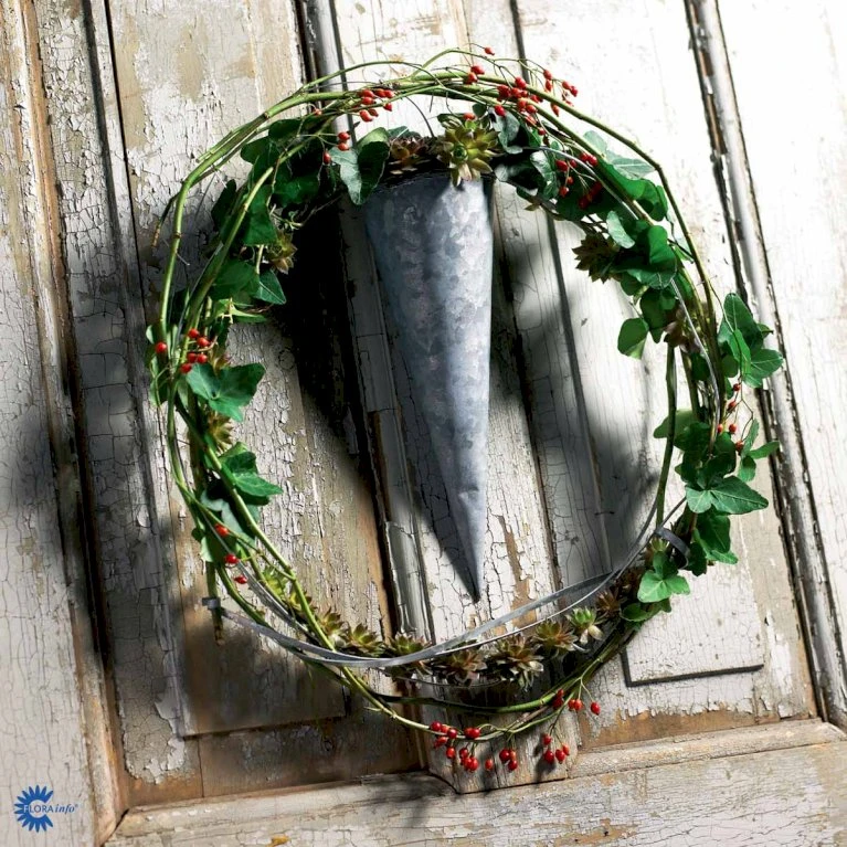 4-10 m, Kraftigt voksende med lange skud, der fæstner sig til alle underlag med de såkaldte hæfterødder. Bladene er små, trelappede, stedsegrønne og blanke. Hjemmehørende art.