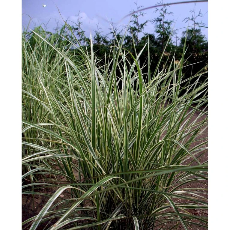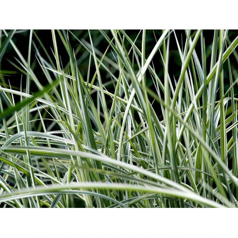 Stråene er omkring 1 cm brede, mørkegrønne og med brede hvide kanter. Meget yndefuld vækstform med overhængende skudspidser.